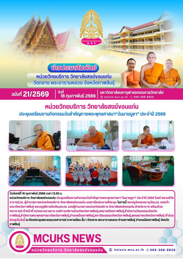 หน่วยวิทยบริการ วิทยาลัยสงฆ์ขอนแก่น ประชุมเตรียมงานกิจกรรมวันสำคัญทางพระพุทธศาสนา“วันมาฆบูชา” ประจำปี 2569