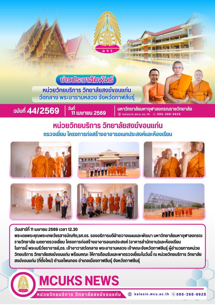 ในการนี้ พระเมธีวัชราจารย์,ดร. เจ้าอาวาสวัดกลาง พระอารามหลวง เจ้าคณะจังหวัดกาฬสินธุ์ ผู้อำนวยการหน่วยวิทยบริการ วิทยาลัยสงฆ์ขอนแก่น พร้อมคณะ ให้การต้อนรับและพาตรวจเยี่ยมในวันนี้ ณ หน่วยวิทยบริการ วิทยาลัยสงฆ์ขอนแก่น (ที่ตั้งใหม่) ตำบลโพนทอง อำเภอเมืองกาฬสินธุ์ จังหวัดกาฬสินธุ์