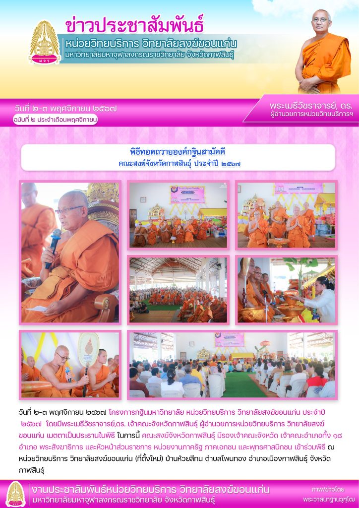 โครงการกฐินมหาวิทยาลัย หน่วยวิทยบริการ วิทยาลัยสงฆ์ขอนแก่น ประจำปี ๒๕๖๗