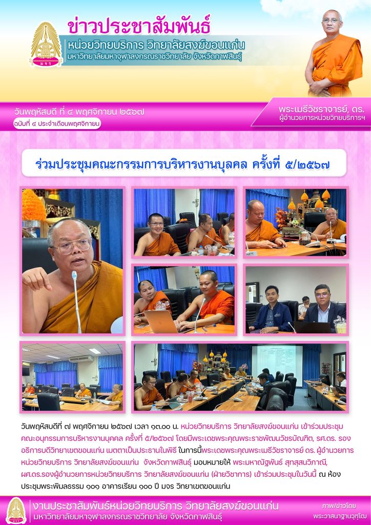 หน่วยวิทยบริการ วิทยาลัยสงฆ์ขอนแก่น เข้าร่วมประชุมคณะอนุกรรมการบริหารงานบุคคล ครั้งที่ ๕/๒๕๖๗