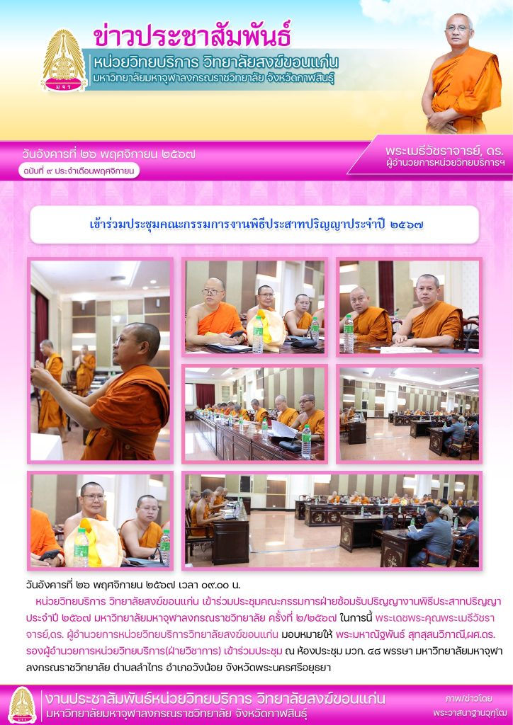 หน่วยวิทยบริการ วิทยาลัยสงฆ์ขอนแก่น เข้าร่วมประชุมคณะกรรมการฝ่ายซ้อมรับปริญญางานพิธีประสาทปริญญา ประจำปี ๒๕๖๗ ครั้งที่ ๒/๒๕๖๗