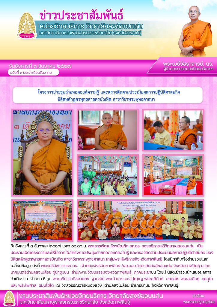 โครงการประชุมถ่ายทอดองค์ความรู้ และตรวจติดตามประเมินผลการปฏิบัติศาสนกิจ ของนิสิตหลักสูตรพุทธศาสตรบัณฑิต สาขาวิชาพระพุทธศาสนา (กลุ่มพระสังฆาธิการจังหวัดกาฬสินธุ์)