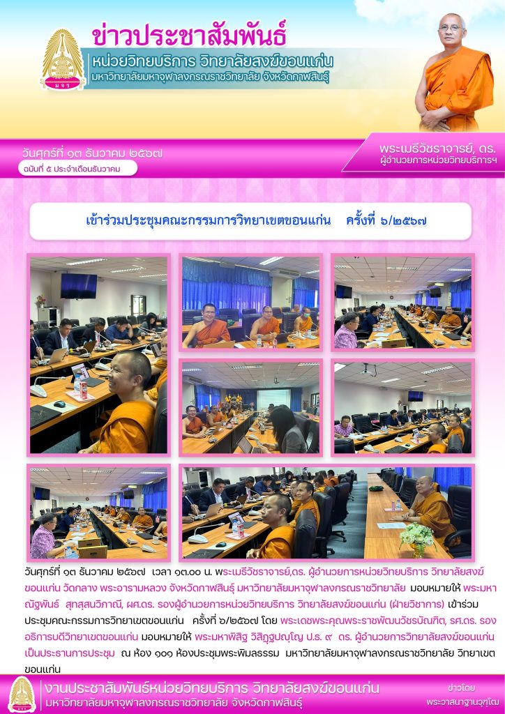หน่วยวิทยบริการ วิทยาลัยสงฆ์ขอนแก่น เข้าร่วมประชุมคณะกรรมการวิทยาเขตขอนแก่น ครั้งที่ ๖/๒๕๖๗