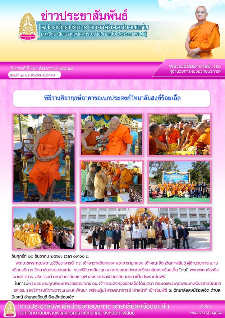 หน่วยวิทยบริการ วิทยาลัยสงฆ์ขอนแก่น ร่วมพิธีวางศิลาฤกษ์อาคารอเนกประสงค์วิทยาลัยสงฆ์ร้อยเอ็ด