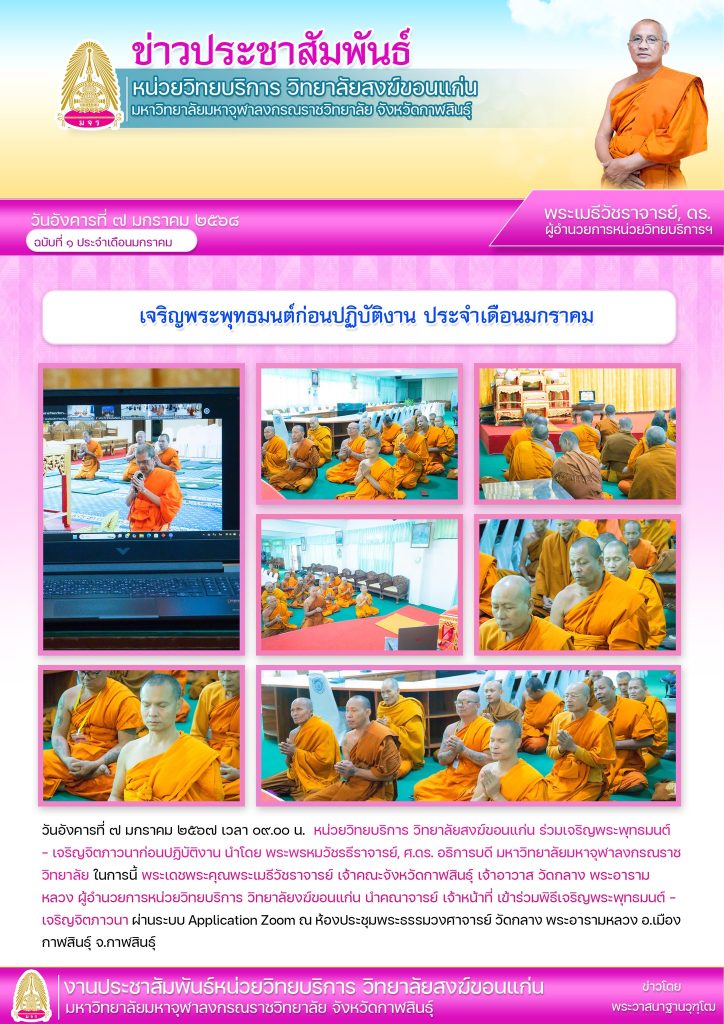 หน่วยวิทยบริการ วิทยาลัยสงฆ์ขอนแก่น ร่วมเจริญพระพุทธมนต์ – เจริญจิตภาวนาก่อนปฏิบัติงาน