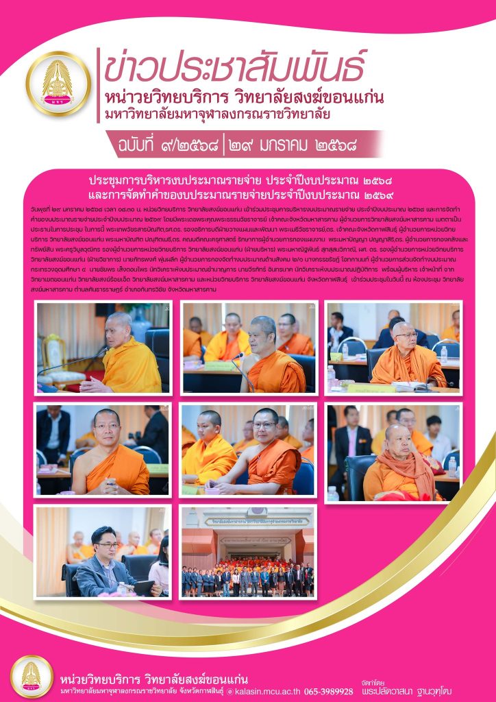 หน่วยวิทยบริการ วิทยาลัยสงฆ์ขอนแก่น เข้าร่วมประชุมการบริหารงบประมาณรายจ่าย ประจำปีงบประมาณ ๒๕๖๘ และการจัดทำคำของบประมาณรายจ่ายประจำปีงบประมาณ ๒๕๖๙