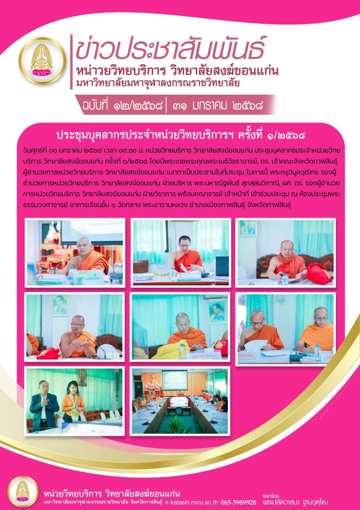 หน่วยวิทยบริการ วิทยาลัยสงฆ์ขอนแก่น ประชุมบุคลากรประจำหน่วยวิทยบริการ วิทยาลัยสงฆ์ขอนแก่น ครั้งที่ ๑/๒๕๖๘