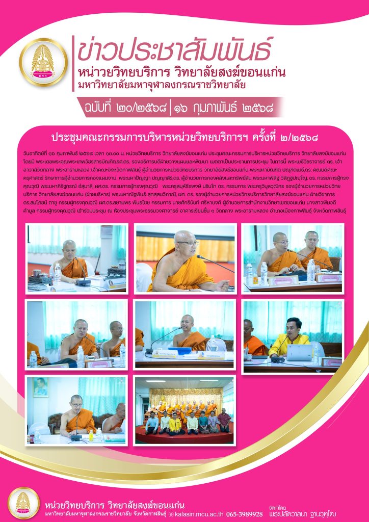 การประชุมคณะกรรมการบริหารหน่วยวิทยบริการ วิทยาลัยสงฆ์ขอนแก่น ครั้งที่ ๒/๒๕๖๘