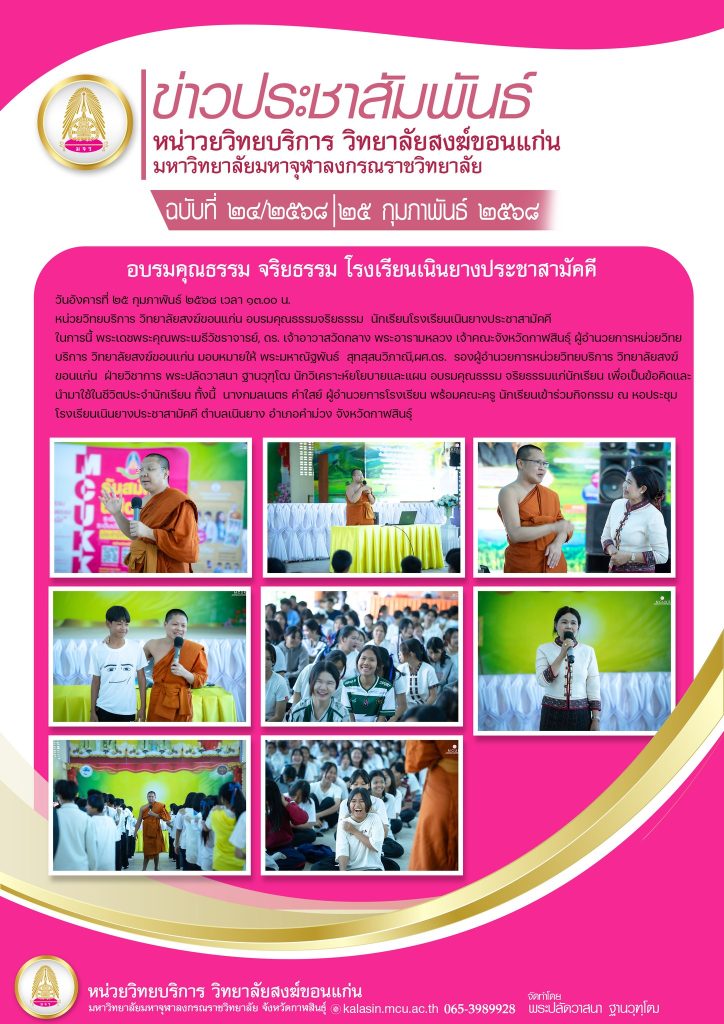 หน่วยวิทยบริการ วิทยาลัยสงฆ์ขอนแก่น อบรมคุณธรรมจริยธรรม นักเรียนโรงเรียนเนินยางประชาสามัคคี