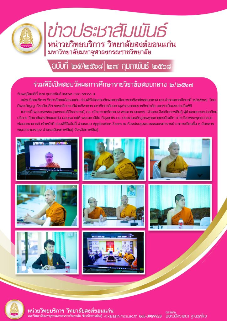 หน่วยวิทยบริการ วิทยาลัยสงฆ์ขอนแก่น ร่วมพิธีเปิดสอบวัดผลการศึกษารายวิชาข้อสอบกลาง ประจำภาคการศึกษาที่ ๒/๒๕๖๗