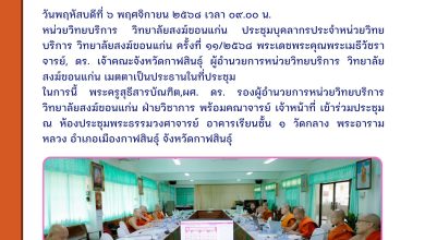 หน่วยวิทยบริการ วิทยาลัยสงฆ์ขอนแก่น ร่วมพิธีเปิดสอบวัดผลการศึกษารายวิชาข้อสอบกลาง ประจำภาคการศึกษาที่ ๒/๒๕๖๗ โดยมีพระปัญญาวัชรบัณฑิต, รศ.ดร. รองอธิการบดีฝ่ายวิชาการ มหาวิทยาลัยมหาจุฬาลงกรณราชวิทยาลัย เมตตาเป็นประธานในพิธี