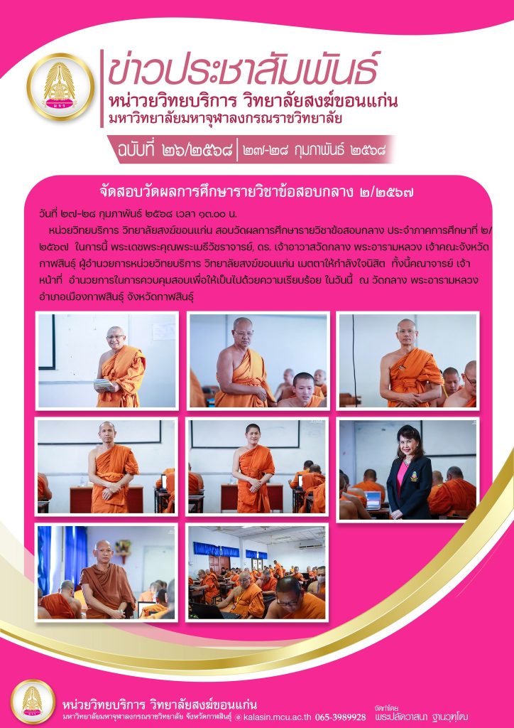 หน่วยวิทยบริการ วิทยาลัยสงฆ์ขอนแก่น สอบวัดผลการศึกษารายวิชาข้อสอบกลาง ประจำภาคการศึกษาที่ ๒/๒๕๖๗