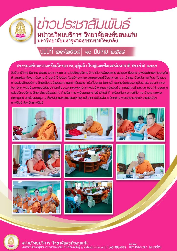 หน่วยวิทยบริการ วิทยาลัยสงฆ์ขอนแก่น ประชุมเตรียมความพร้อมโครงการบุญกุ้มข้าวใหญ่และฟังเทศน์มหาชาติ ประจำปี ๒๕๖๘