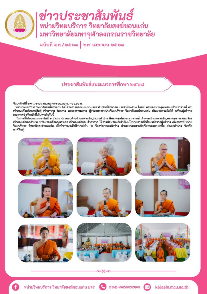 หน่วยวิทยบริการ วิทยาลัยสงฆ์ขอนแก่น จัดโครงการออกแนะแนวประชาสัมพันธ์ศึกษาต่อ ประจำปี ๒๕๖๘ อำเภอสามชัย,อำเภอคำม่วง
