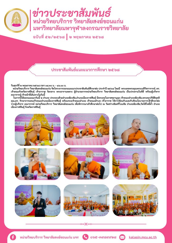 หน่วยวิทยบริการ วิทยาลัยสงฆ์ขอนแก่น จัดโครงการออกแนะแนวประชาสัมพันธ์ศึกษาต่อ ประจำปี ๒๕๖๘ อำเภอฆ้องชัย,อำเภอเมืองกาฬสินธุ์