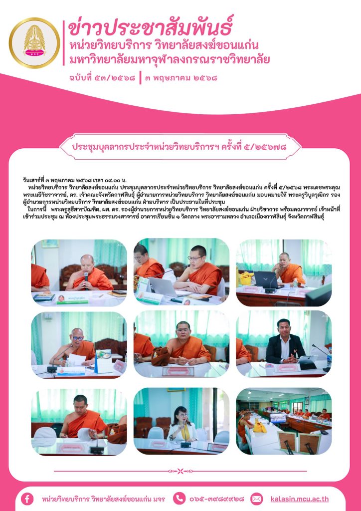 หน่วยวิทยบริการ วิทยาลัยสงฆ์ขอนแก่น ประชุมบุคลากรประจำหน่วยวิทยบริการ วิทยาลัยสงฆ์ขอนแก่น ครั้งที่ ๕/๒๕๖๘