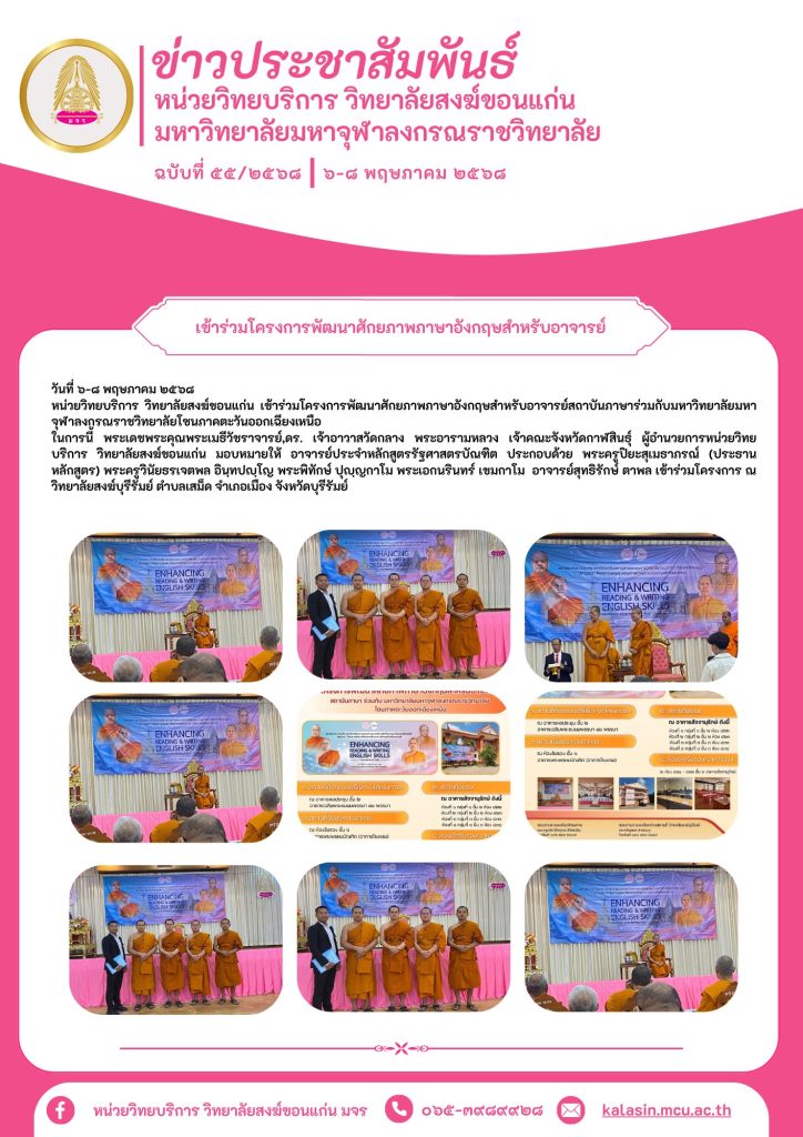 หน่วยวิทยบริการ วิทยาลัยสงฆ์ขอนแก่น เข้าร่วมโครงการพัฒนาศักยภาพภาษาอังกฤษสำหรับอาจารย์สถาบันภาษาร่วมกับมหาวิทยาลัยมหาจุฬาลงกรณราชวิทยาลัยโซนภาคตะวันออกเฉียงเหนือ