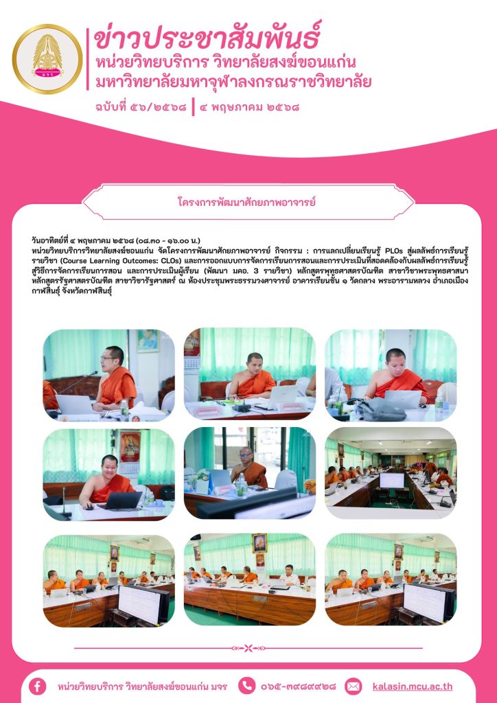 หน่วยวิทยบริการ วิทยาลัยสงฆ์ขอนแก่น จัดโครงการพัฒนาศักยภาพอาจารย์ กิจกรรม : การแลกเปลี่ยนเรียนรู้ PLOs สู่ผลลัพธ์การเรียนรู้รายวิชา (Course Learning Outcomes: CLOs)