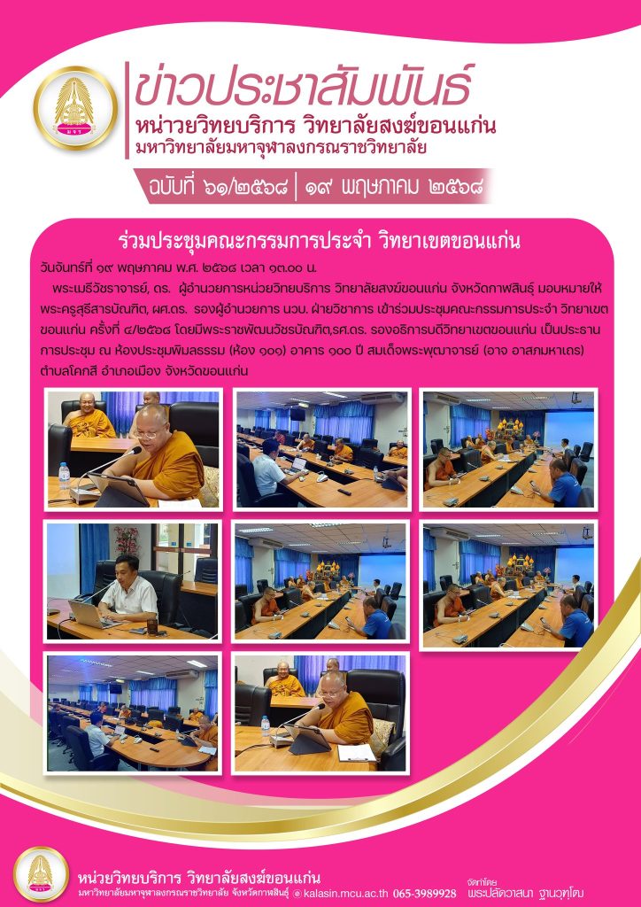 หน่วยวิทยบริการ วิทยาลัยสงฆ์ขอนแก่น จังหวัดกาฬสินธุ์ เข้าร่วมประชุมคณะกรรมการประจำ วิทยาเขตขอนแก่น ครั้งที่ ๔/๒๕๖๘