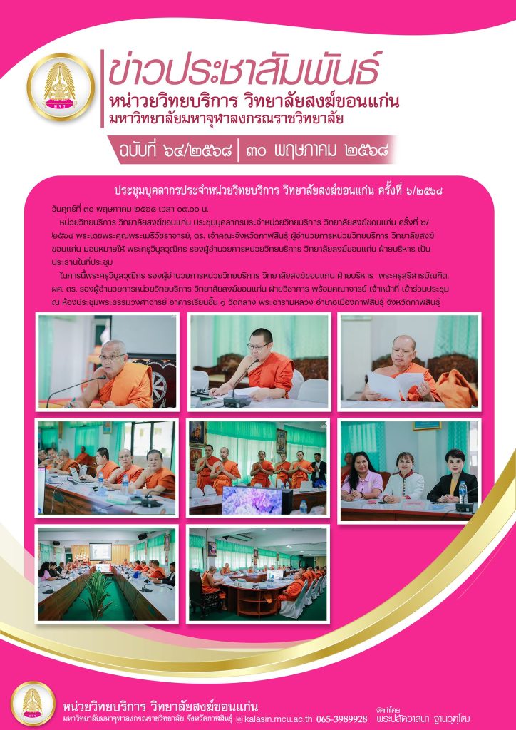 หน่วยวิทยบริการ วิทยาลัยสงฆ์ขอนแก่น ประชุมบุคลากรประจำหน่วยวิทยบริการ วิทยาลัยสงฆ์ขอนแก่น ครั้งที่ ๖/๒๕๖๘