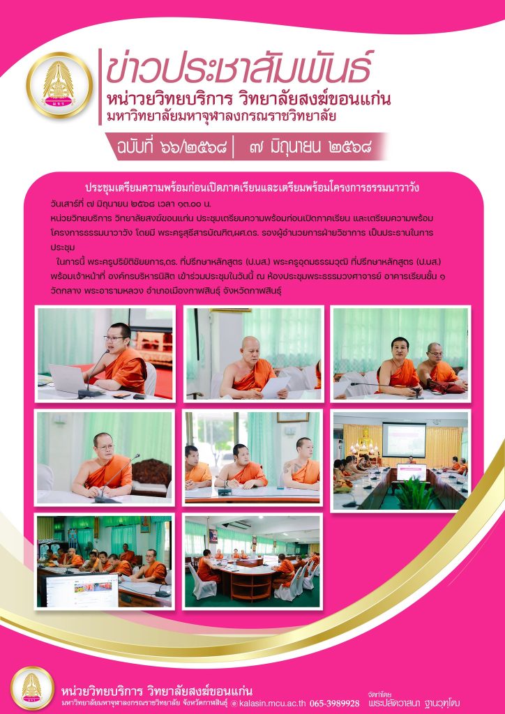 หน่วยวิทยบริการ วิทยาลัยสงฆ์ขอนแก่น ประชุมเตรียมความพร้อมก่อนเปิดภาคเรียน และเตรียมความพร้อมโครงการธรรมนาวาวัง