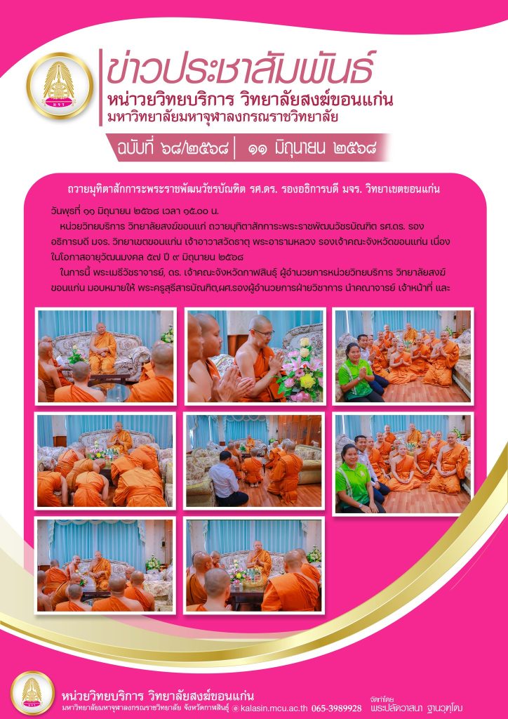 หน่วยวิทยบริการ วิทยาลัยสงฆ์ขอนแก่ ถวายมุทิตาสักการะพระราชพัฒนวัชรบัณฑิต รศ.ดร. รองอธิการบดี มจร. วิทยาเขตขอนแก่น เจ้าอาวาสวัดธาตุ พระอารามหลวง รองเจ้าคณะจังหวัดขอนแก่น เนื่องในโอกาสอายุวัฒนมงคล ๕๗ ปี ๙ มิถุนายน ๒๕๖๘