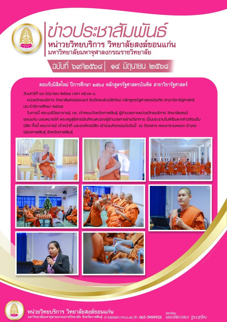 หน่วยวิทยบริการ วิทยาลัยสงฆ์ขอนแก่ ยินดีตอนรับนิสิตใหม่ หลักสูตรรัฐศาสตรบัณฑิต สาขาวิชารัฐศาสตร์ ประจำปีการศึกษา ๒๕๖๘