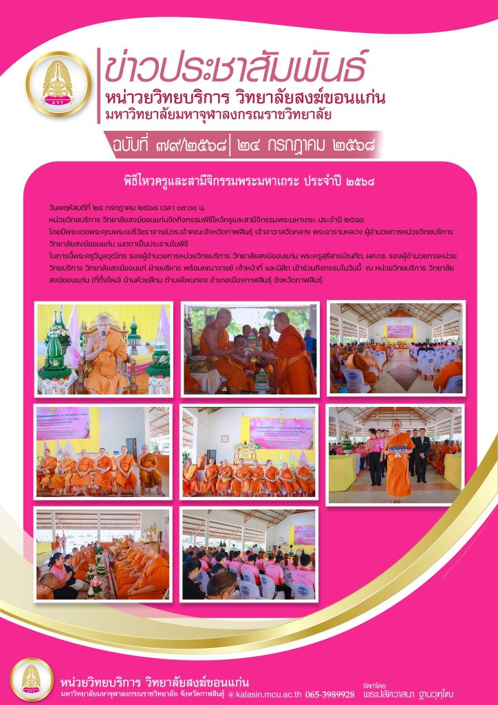 หน่วยวิทยบริการ วิทยาลัยสงฆ์ขอนแก่น จัดกิจกรรมพิธีไหว้ครูและสามีจิกรรมพระมหาเถระ ประจำปี ๒๕๖๘