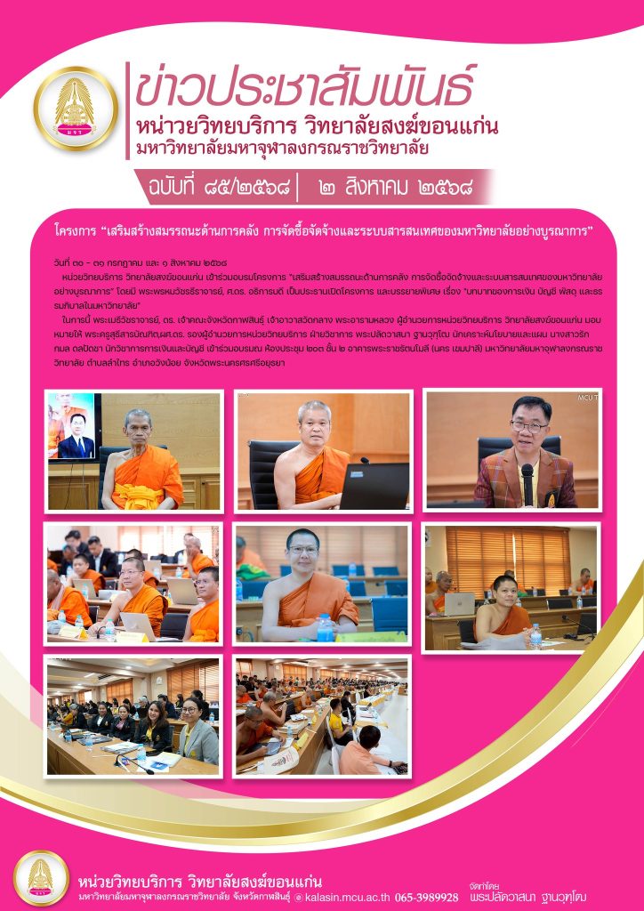 หน่วยวิทยบริการ วิทยาลัยสงฆ์ขอนแก่น เข้าร่วมอบรมโครงการ “เสริมสร้างสมรรถนะด้านการคลัง การจัดซื้อจัดจ้างและระบบสารสนเทศของมหาวิทยาลัยอย่างบูรณาการ”