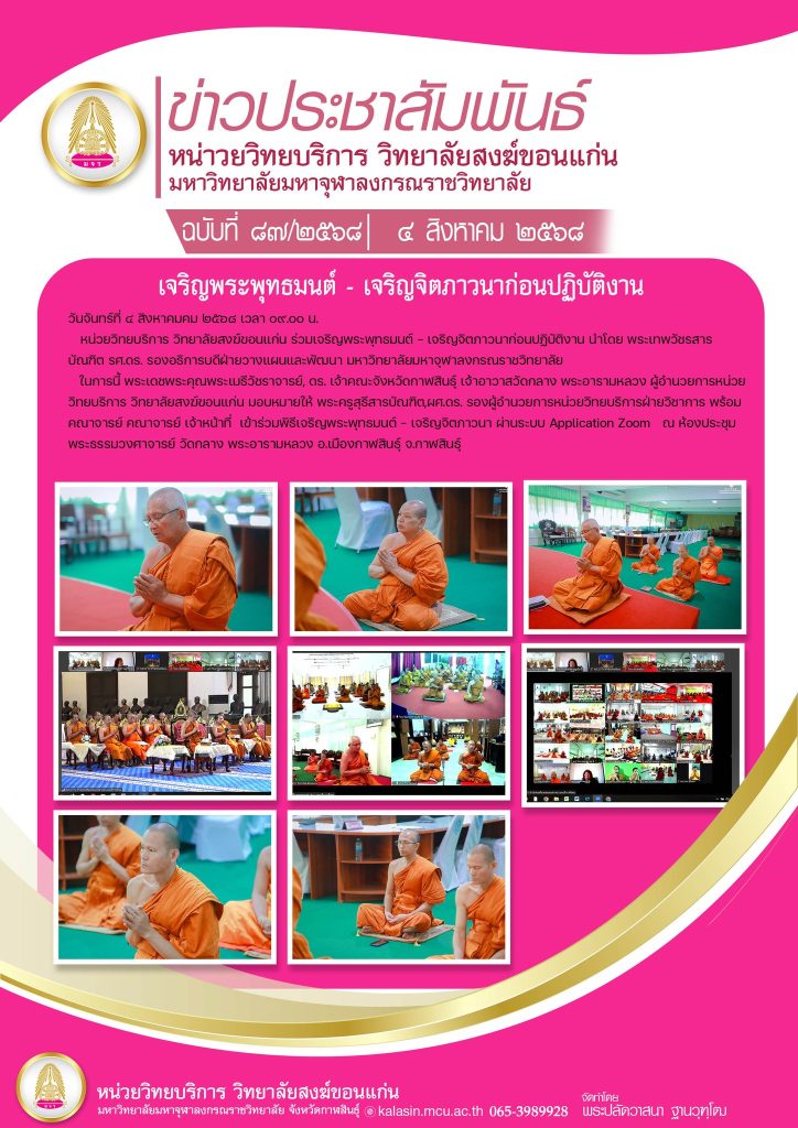 หน่วยวิทยบริการ วิทยาลัยสงฆ์ขอนแก่น ร่วมเจริญพระพุทธมนต์ – เจริญจิตภาวนาก่อนปฏิบัติงาน