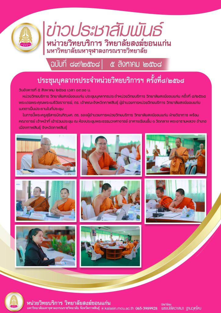 หน่วยวิทยบริการ วิทยาลัยสงฆ์ขอนแก่น ประชุมบุคลากรประจำหน่วยวิทยบริการ วิทยาลัยสงฆ์ขอนแก่น ครั้งที่ ๘/๒๕๖๘