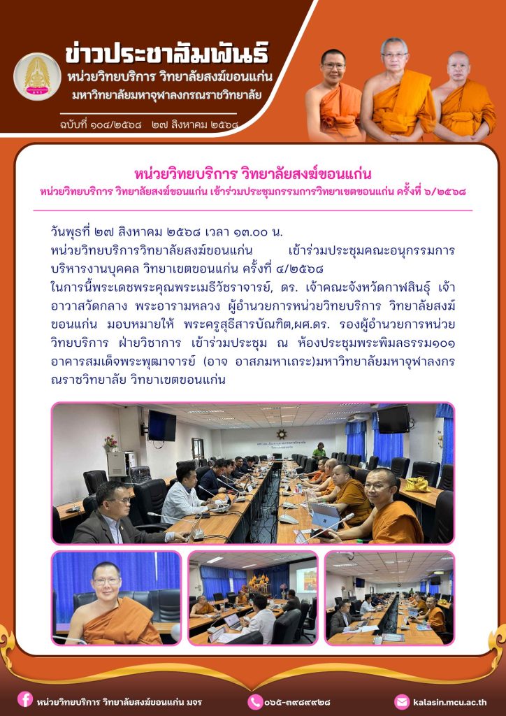 หน่วยวิทยบริการ วิทยาลัยสงฆ์ขอนแก่น เข้าร่วมประชุมกรรมการวิทยาเขตขอนแก่น ครั้งที่ ๖/๒๕๖๘