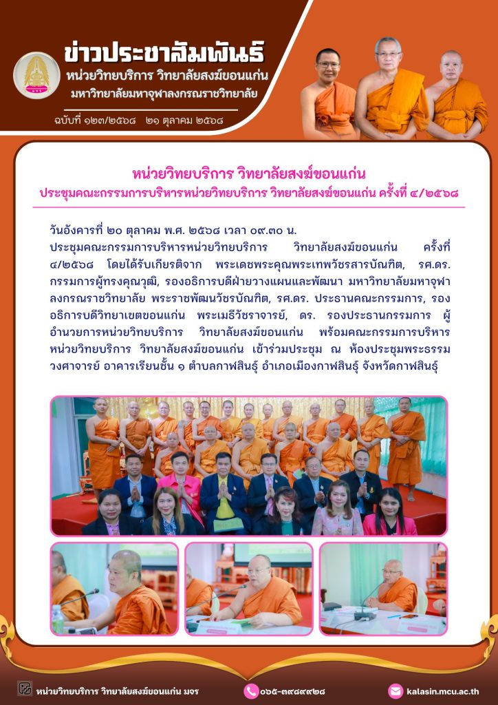 การประชุมคณะกรรมการบริหารหน่วยวิทยบริการ วิทยาลัยสงฆ์ขอนแก่น ครั้งที่ ๔/๒๕๖๘