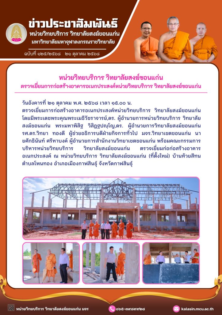 ตรวจเยี่ยมการก่อสร้างอาคารอเนกประสงค์หน่วยวิทยบริการ วิทยาลัยสงฆ์ขอนแก่น