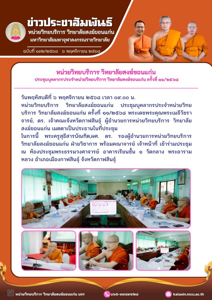 หน่วยวิทยบริการ วิทยาลัยสงฆ์ขอนแก่น ประชุมบุคลากรประจำหน่วยวิทยบริการ วิทยาลัยสงฆ์ขอนแก่น ครั้งที่ ๑๑/๒๕๖๘