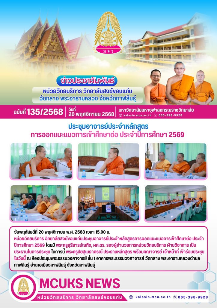 หน่วยวิทยบริการ วิทยาลัยสงฆ์ขอนแก่นประชุมอาจารย์ประจำหลักสูตรการออกแนะแนวการเข้าศึกษาต่อ ประจำปีการศึกษา 2569