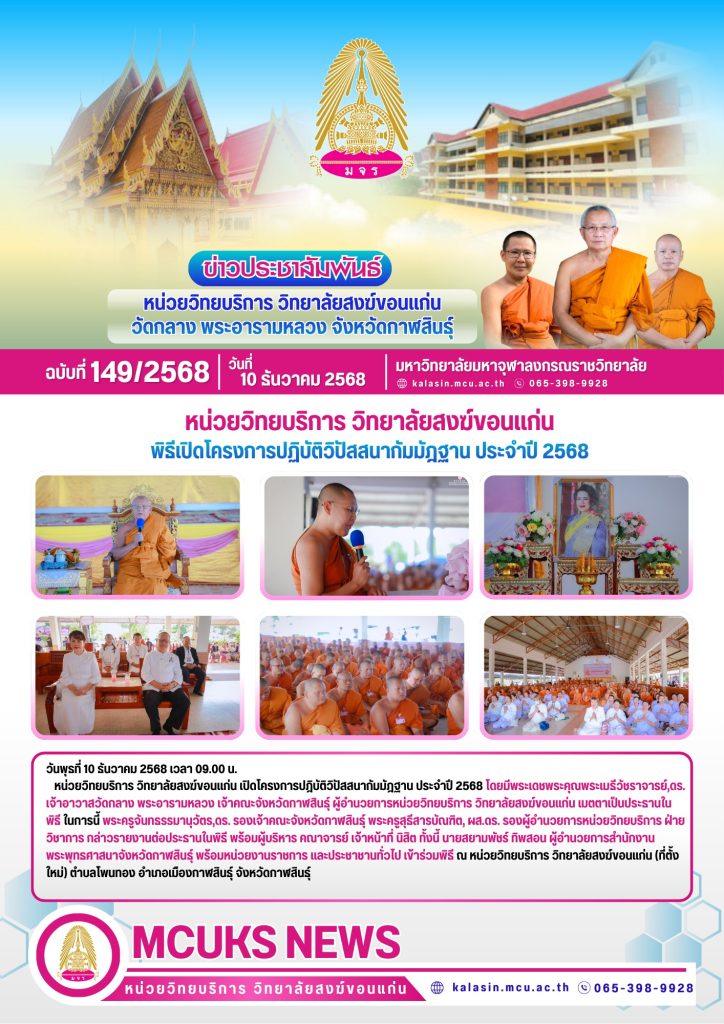 หน่วยวิทยบริการ วิทยาลัยสงฆ์ขอนแก่น เปิดโครงการปฎิบัติวิปัสสนากัมมัฎฐาน ประจำปี 2568